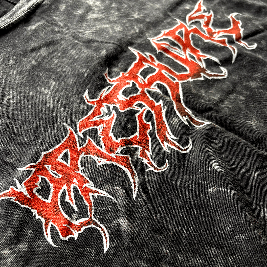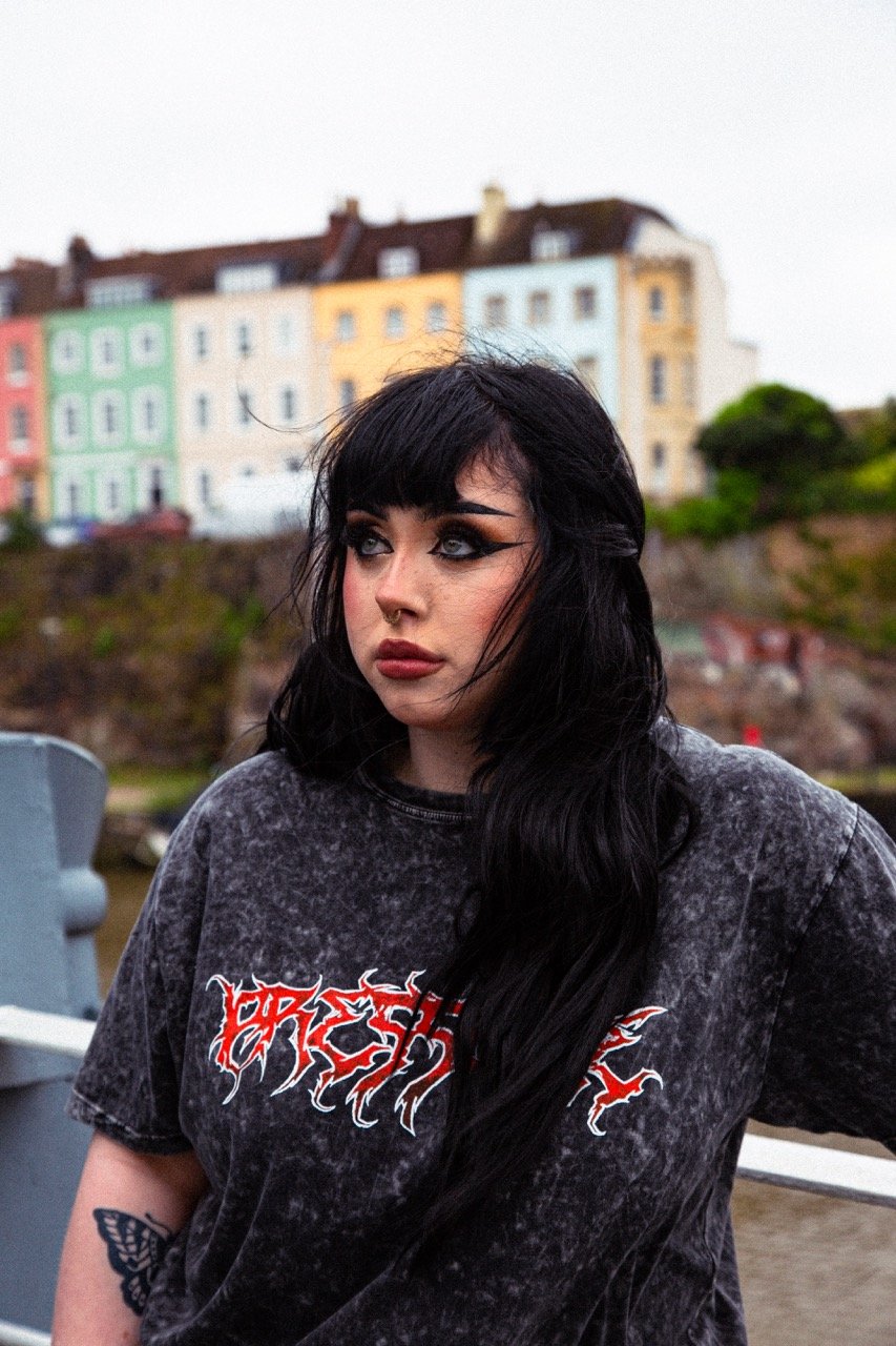 The OG Pressure tee. Red gradient metal logo on acid wash black tee. Printed on high quality and comfortable sustainable garments, so you can trust in the quality of what you’re wearing while representing the South West’s favourite indie & alternative night.